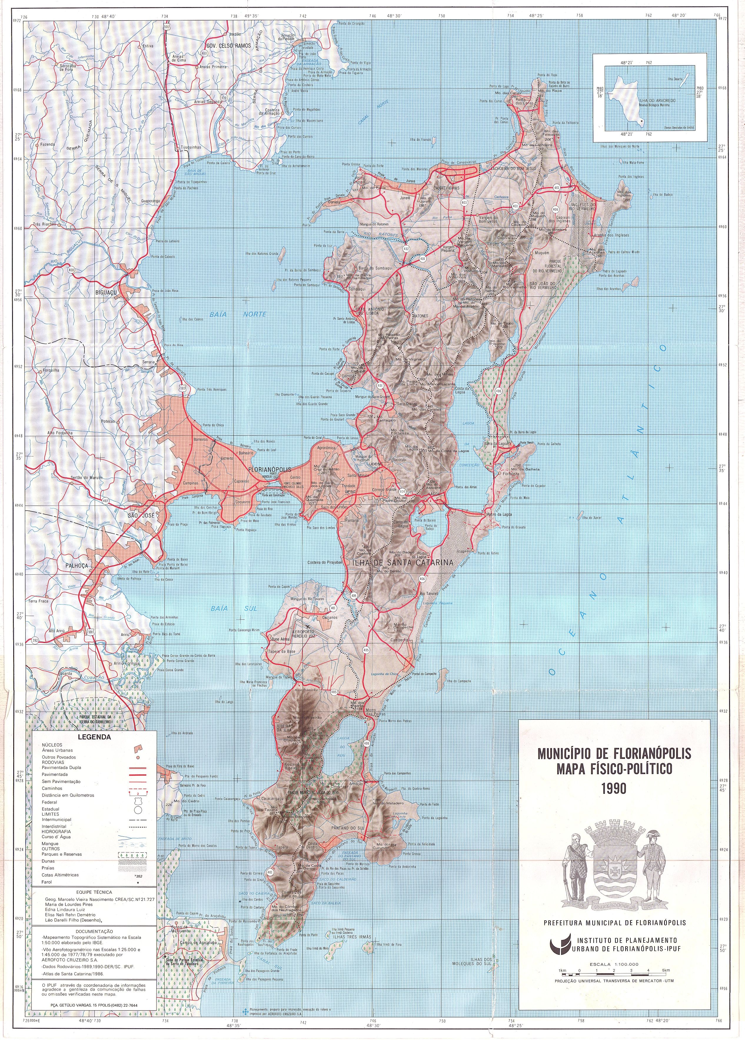 Mapa Físico e Político de Florianópolis 1990